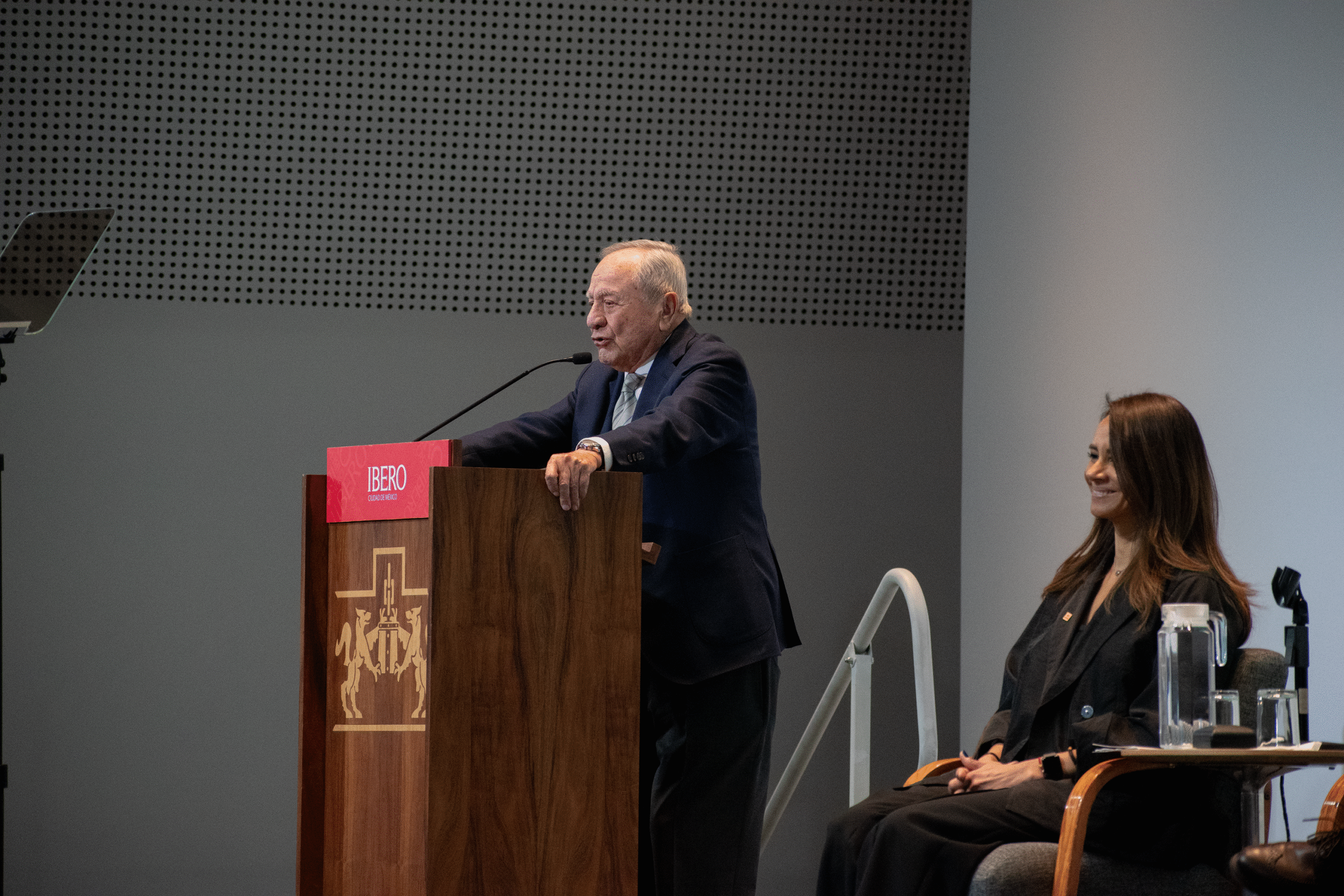 El Arq. Serrano, visiblemente emocionado, agradeció el homenaje y compartió recuerdos de su paso por la Universidad. Recordó que, aunque al principio no planeaba estudiar en la IBERO, “aquí estoy, 70 años después”, y evocó su participación en el proyecto arquitectónico del Campus Santa Fe, en el que colaboró con el Patronato, la empresa ICA y figuras como el P. David Hernández. “La historia que tiene la IBERO atrás es de mucha gente, aunque se ejemplifique en edificaciones”, afirmó.